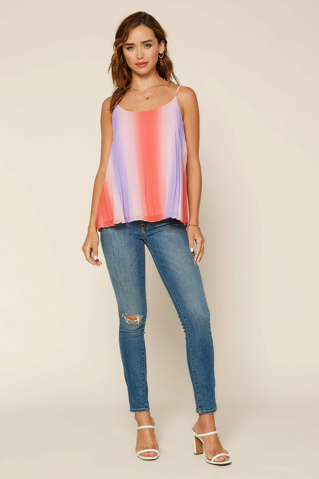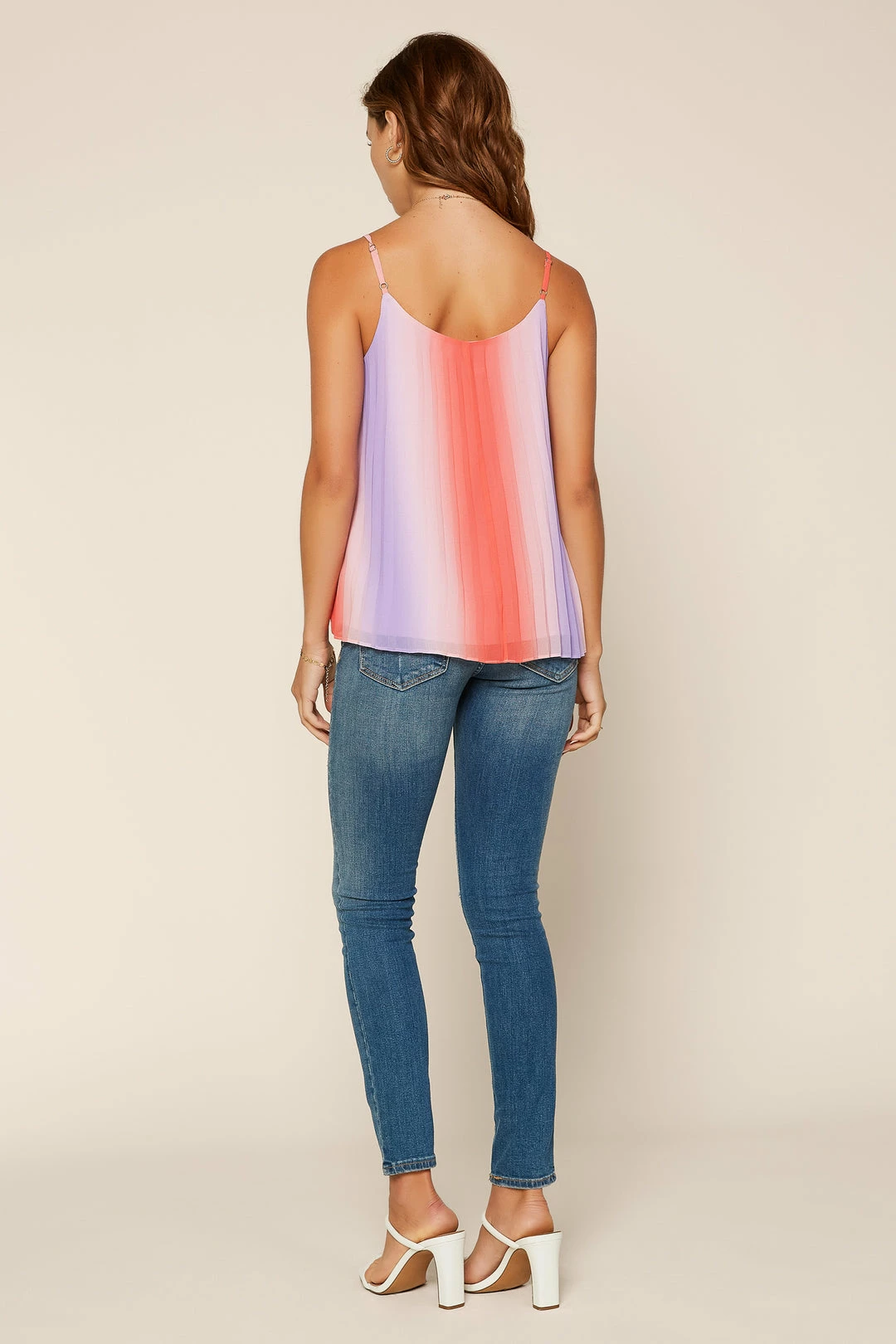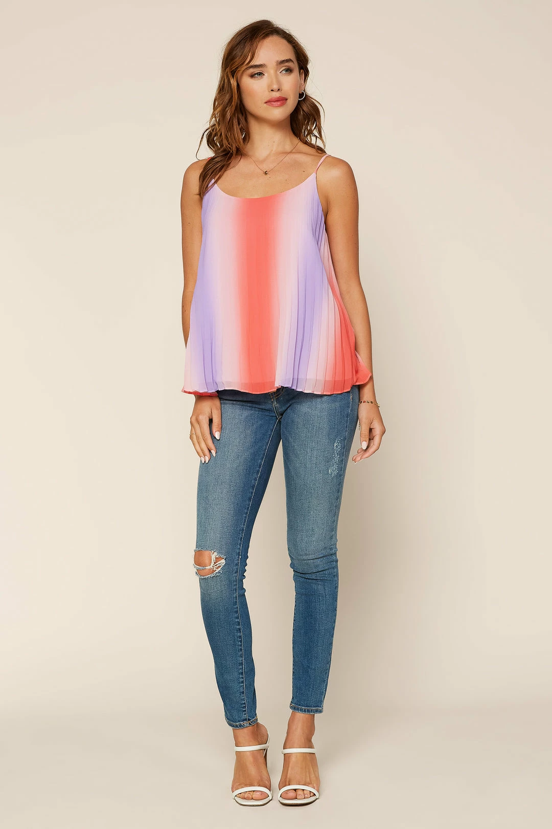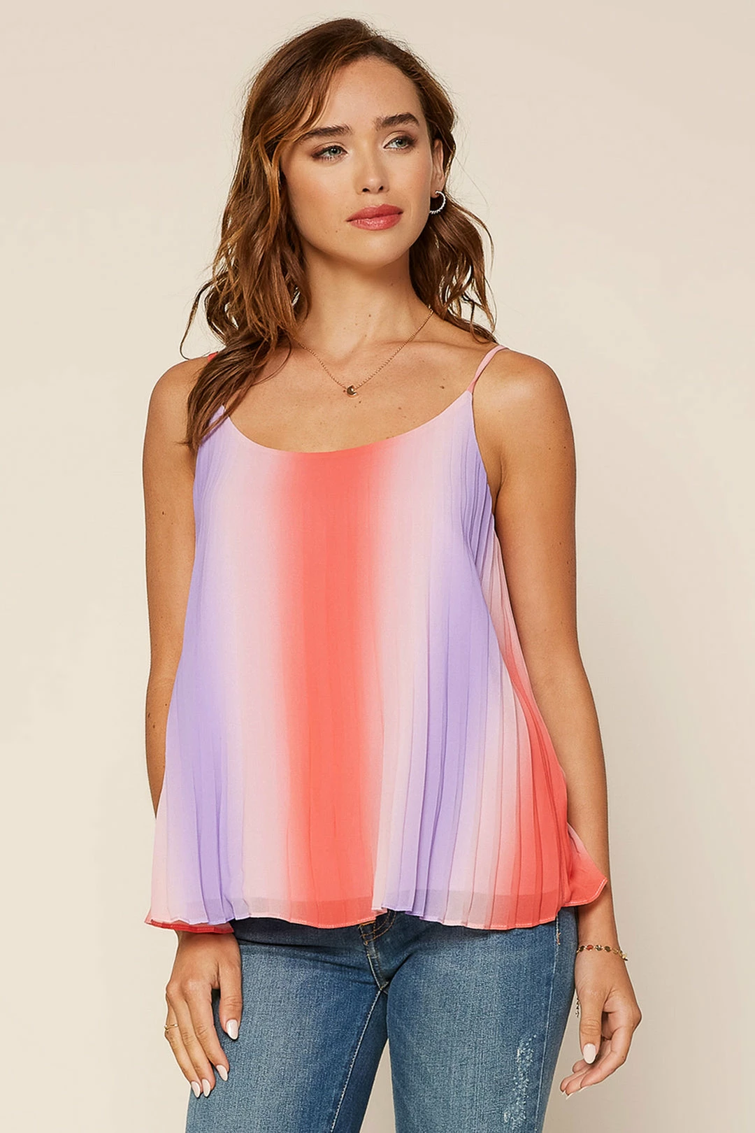 Between the fluid drape of the pleats and the shifting colors, this ombré tank top lends an enchanting touch to any ensemble.