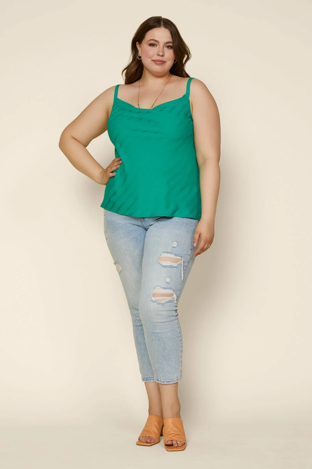This cowl-neck cami top has skinny straps and a beautiful drape in bias-cut striped jacquard. A simple yet alluring style to dress up or down.