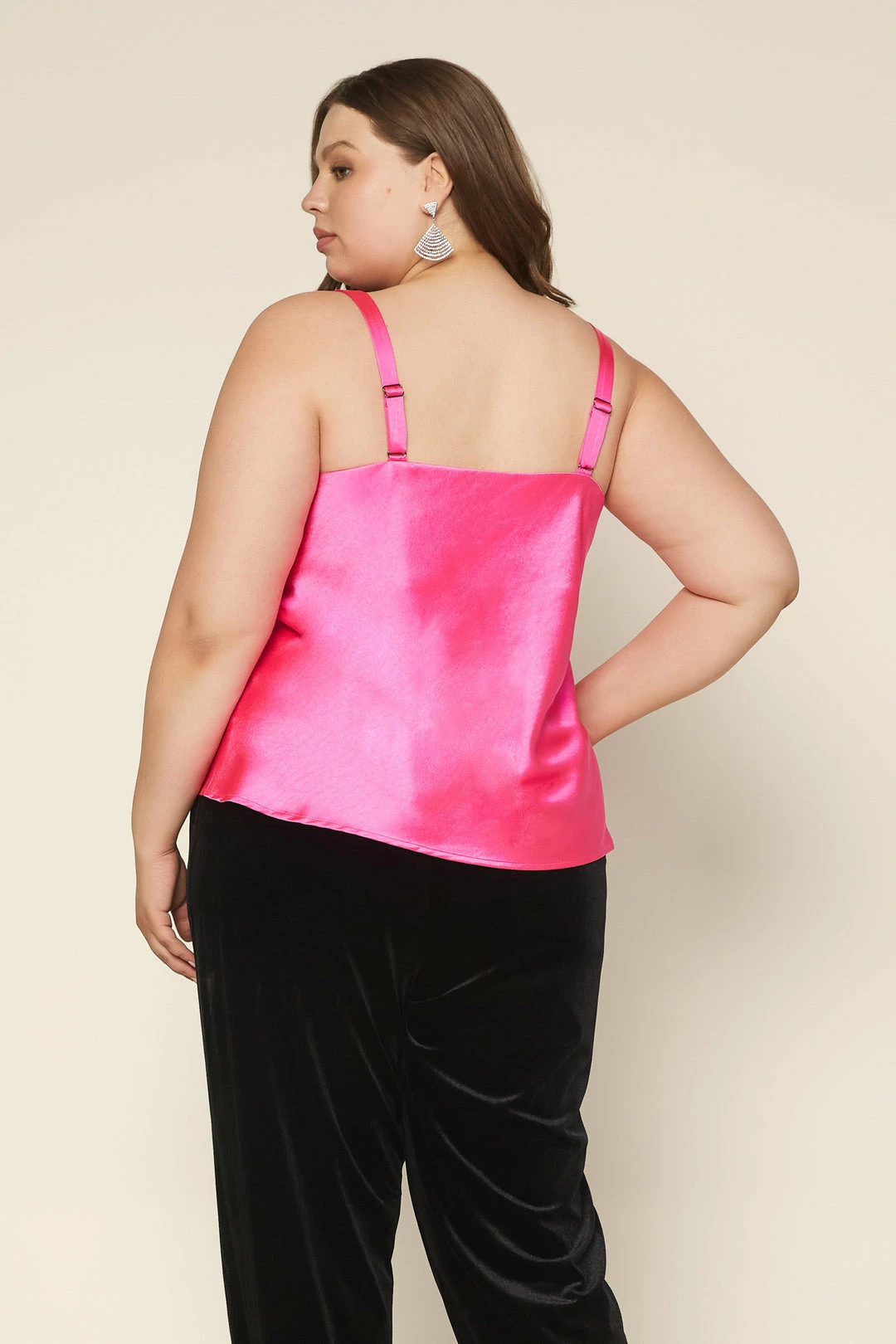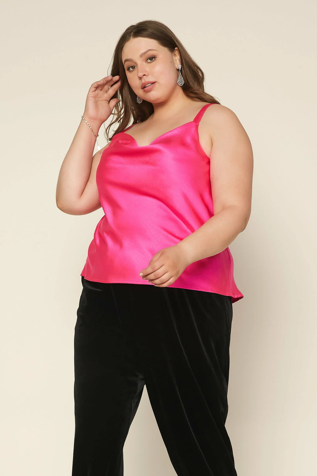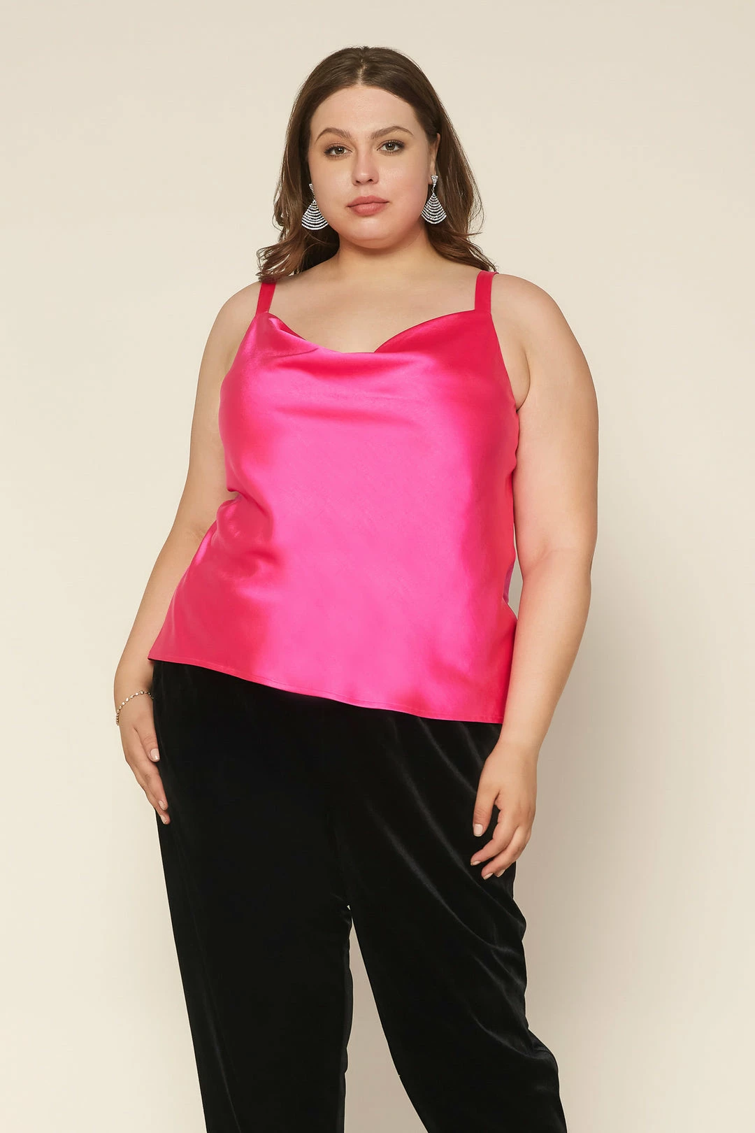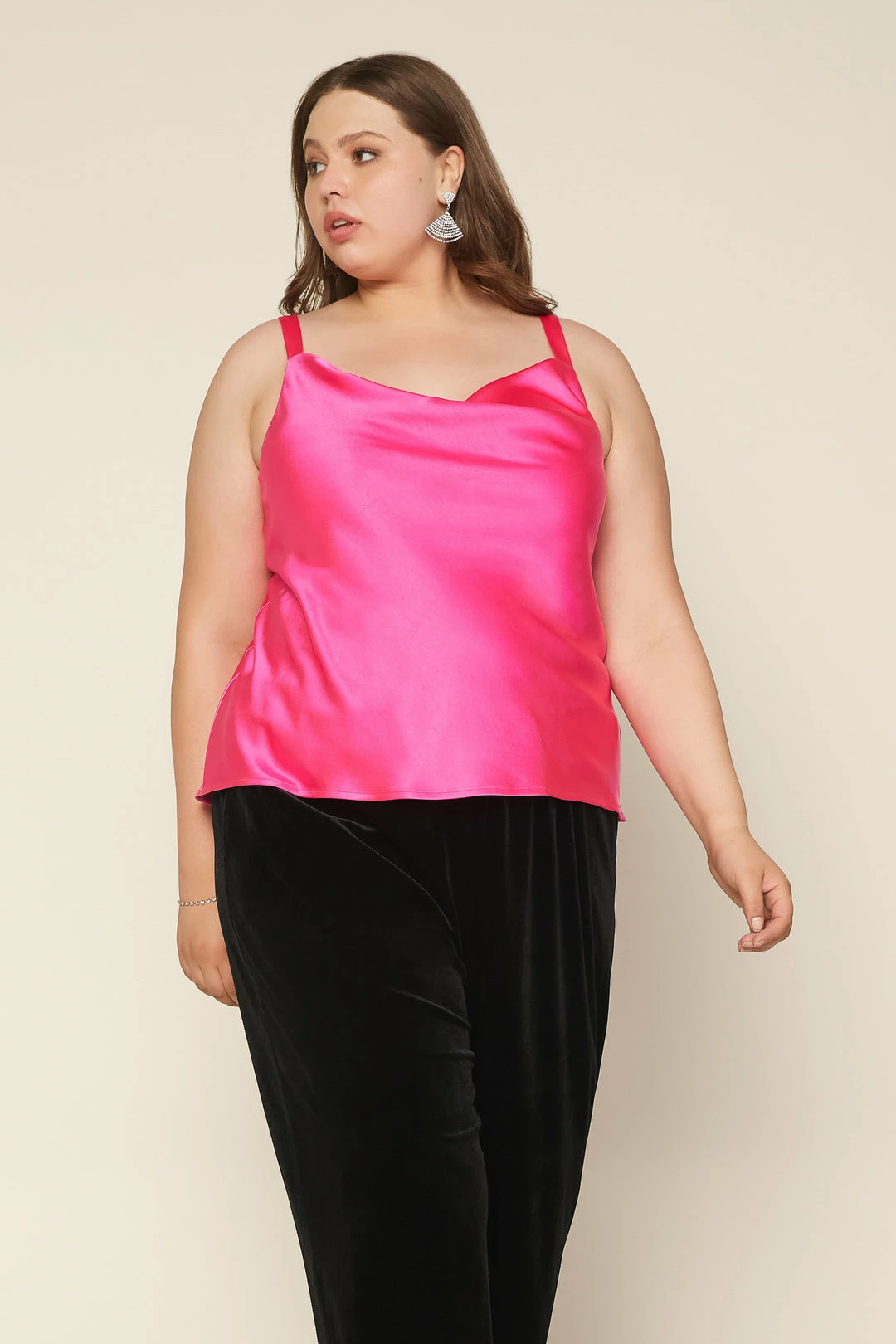 This cowl-neck cami top channels ’90s-inspired minimalism with its simple silhouette, but the bright pink shade makes it pop. An instant mood booster.