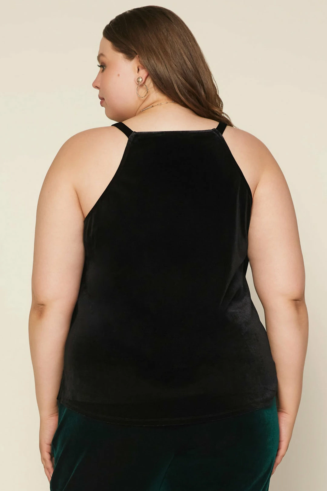 Eyelash lace accents the neckline of this strappy cami top crafted from sumptuous velvet. Wear yours with a pair of jeans or go the soft route by adding our matching velvet jogger pants.