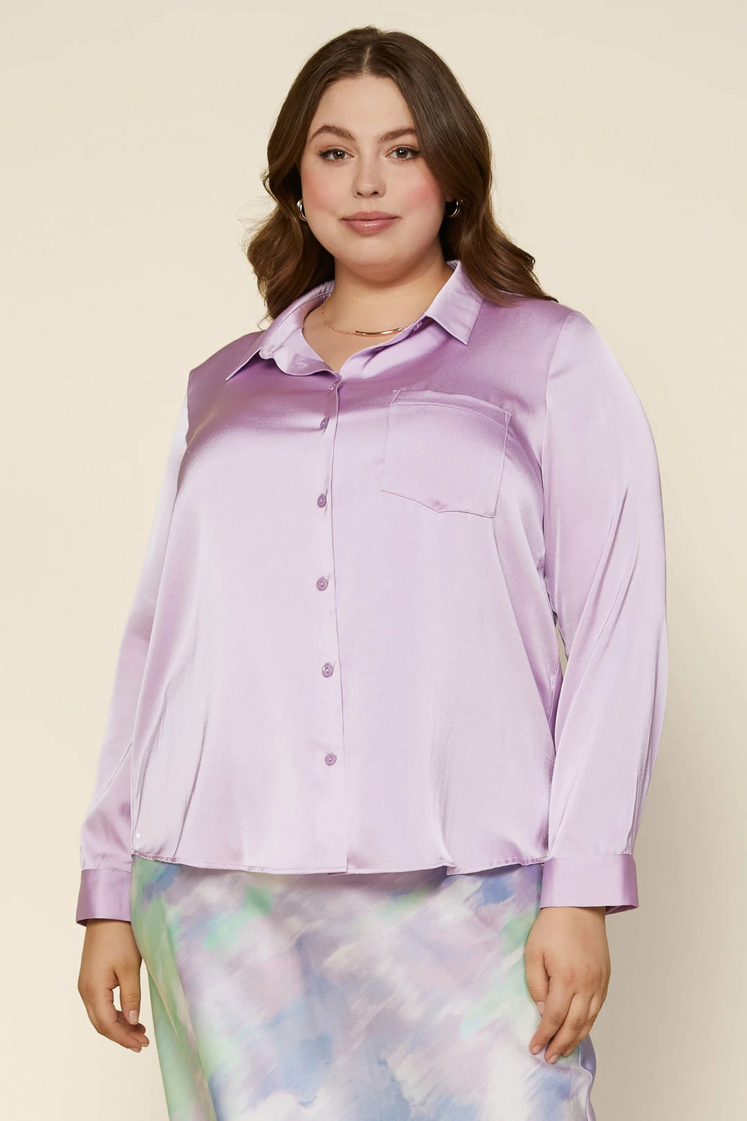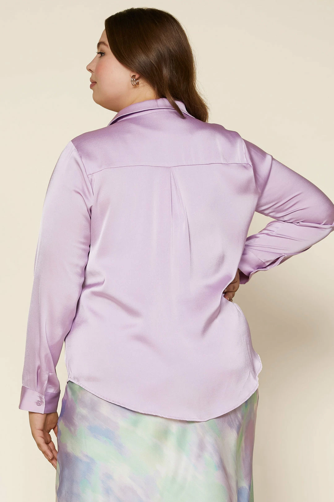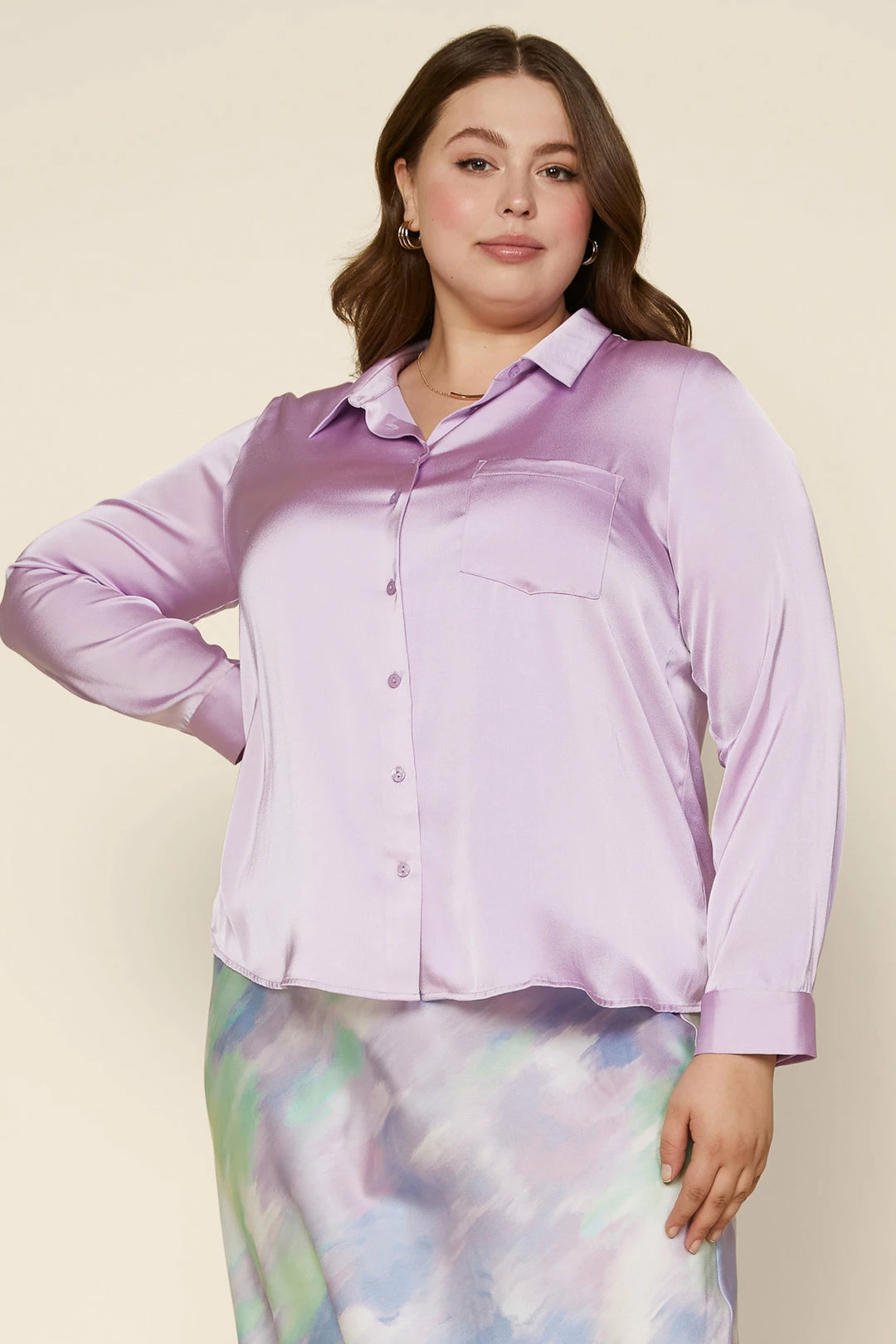 This satin buttondown shirt is a true wardrobe staple, styled with classic details like a pointed collar and a single patch pocket at the chest. We added a button tab at the sleeves, so you can roll them up and keep them in place.