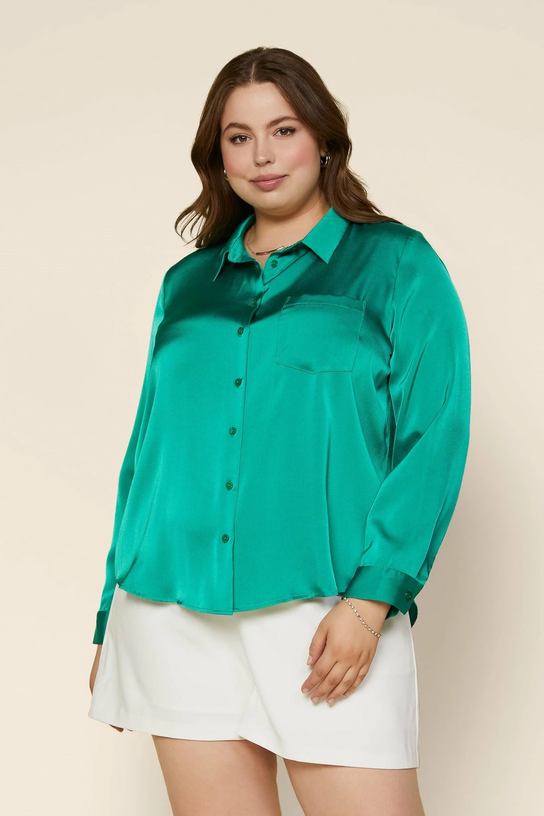 This satin buttondown shirt is a true wardrobe staple, styled with classic details like a pointed collar and a single patch pocket at the chest. We added a button tab at the sleeves, so you can roll them up and keep them in place.