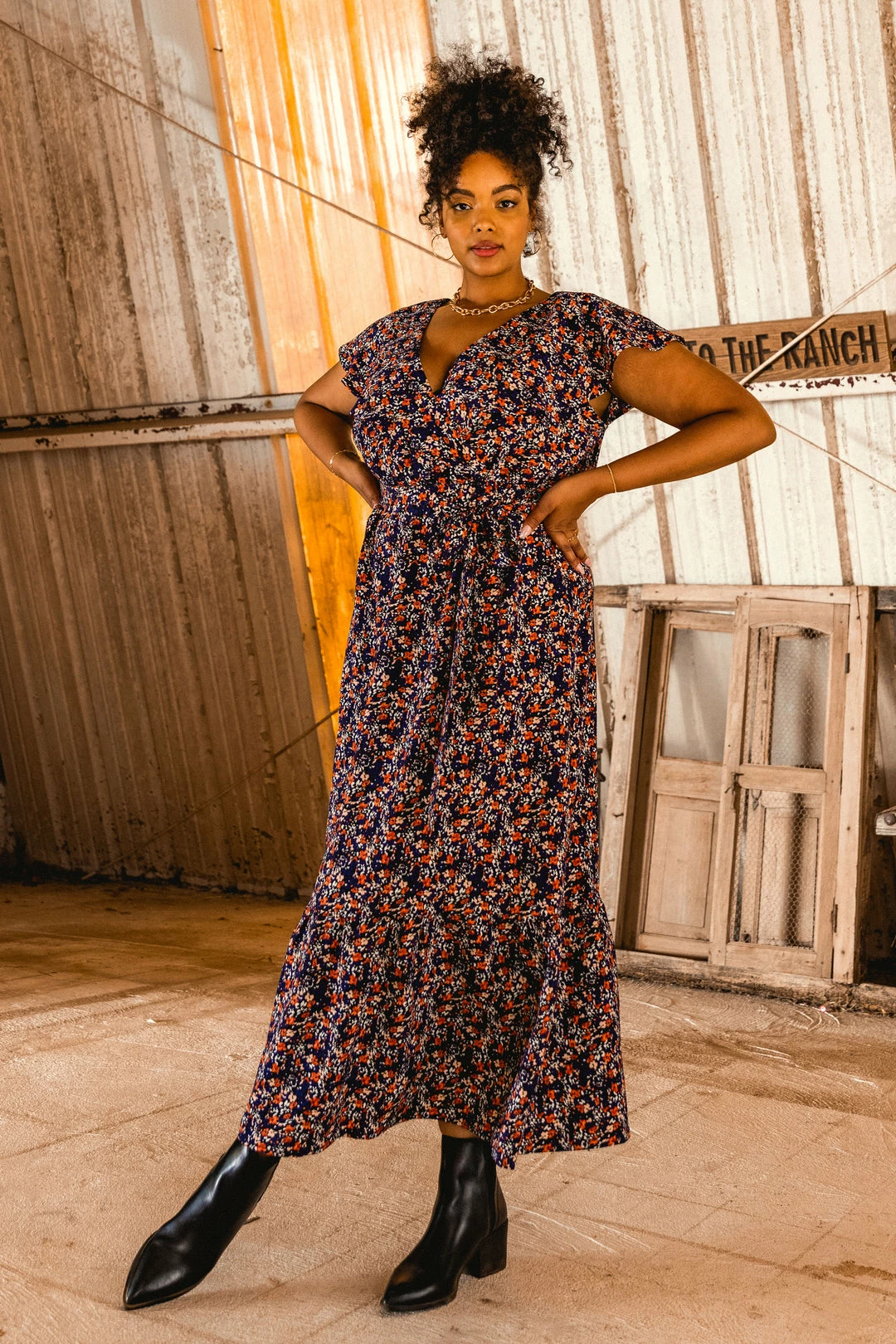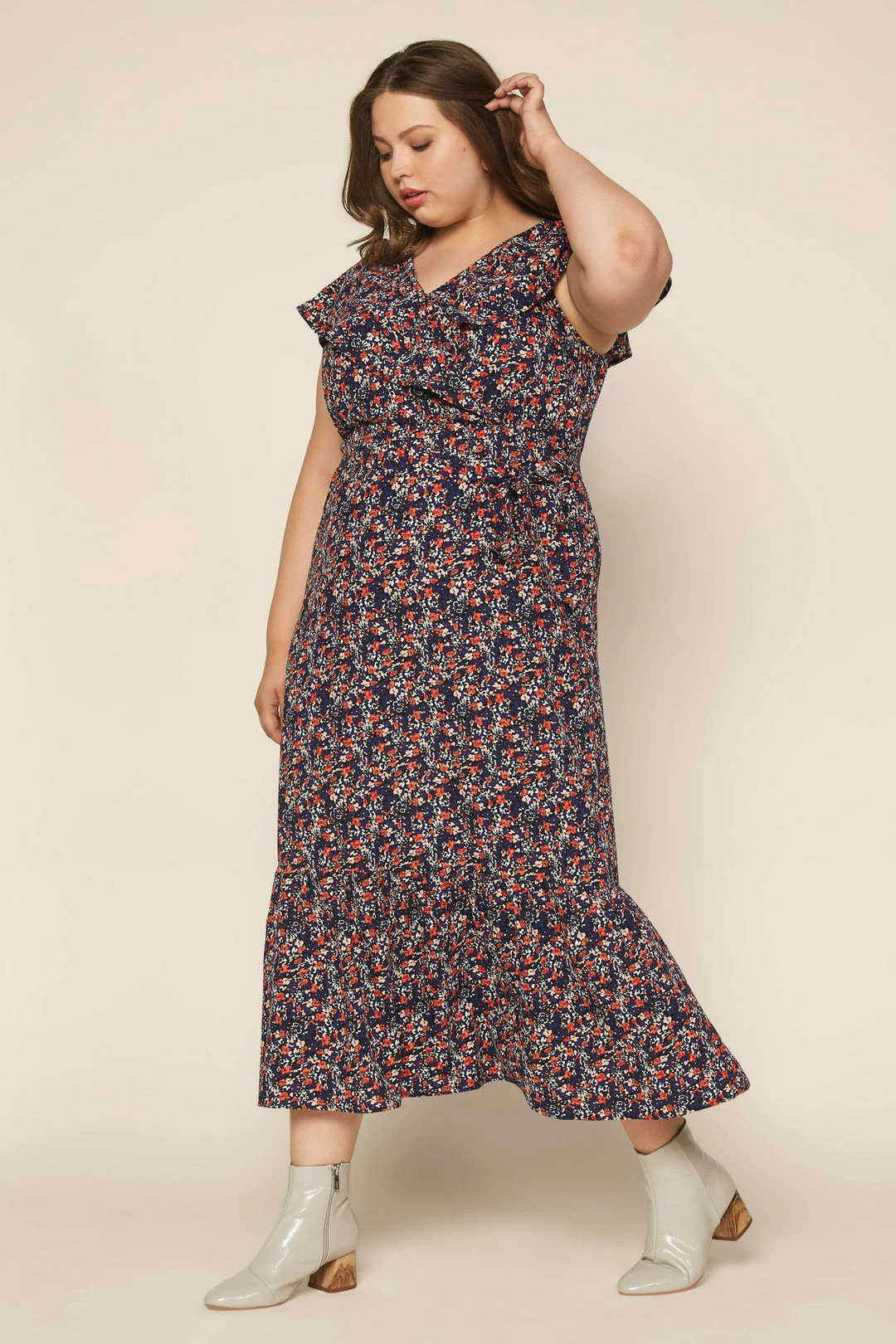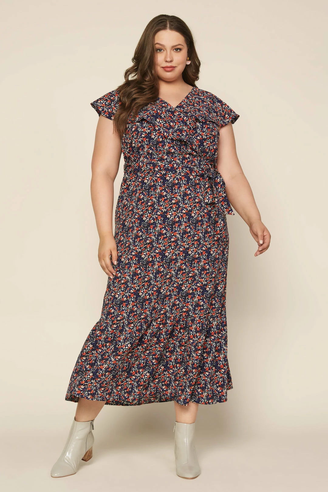 When the day calls for something special, this ditsy floral maxi dress is ready. With a surplice-style bodice, short flutter sleeves, and a ruffle hem, the floor-sweeping number is truly something to covet.