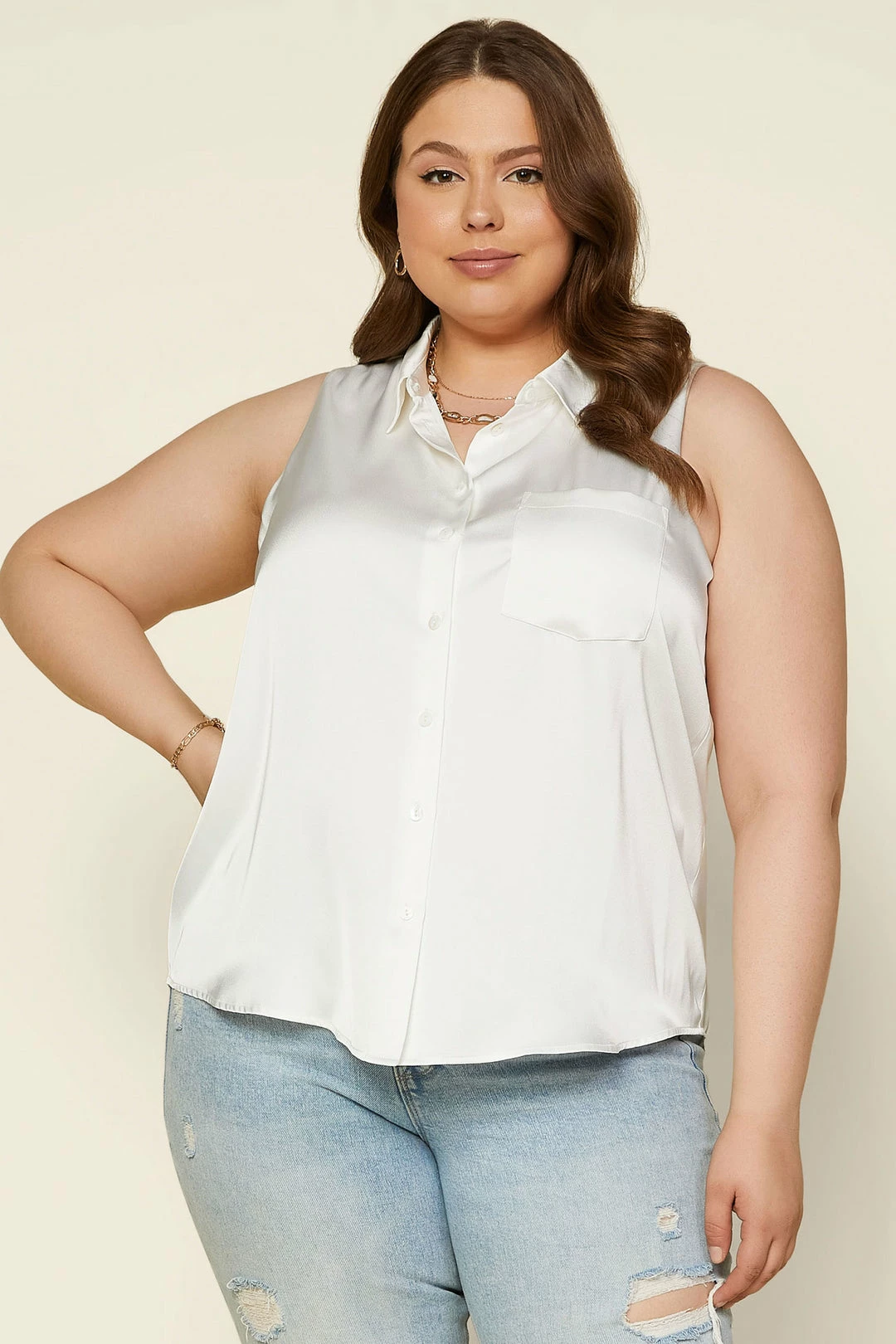 A true classic to wear now and forever. This sleeveless button-up shirt is a bonafide staple to collect in every color. Works well dressed up or down in any season.