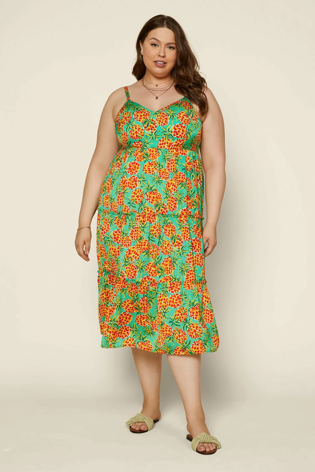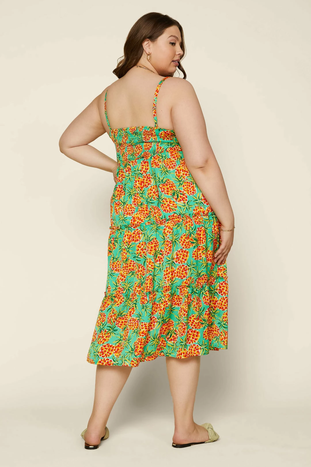This tiered maxi dress is such a charmer in a whimsical pineapple print. It’s bright and playful, done in punchy colors and featuring adjustable straps and flexible smocking for the perfect fit.
