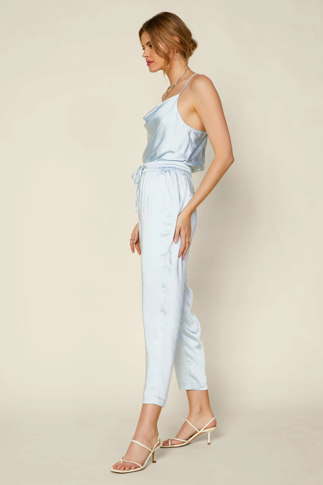 Cut for an easy fit, these satin pants have a comfortable drawstring waist and a gently tapered shape through the legs. A stylish balance of elegance and ease.