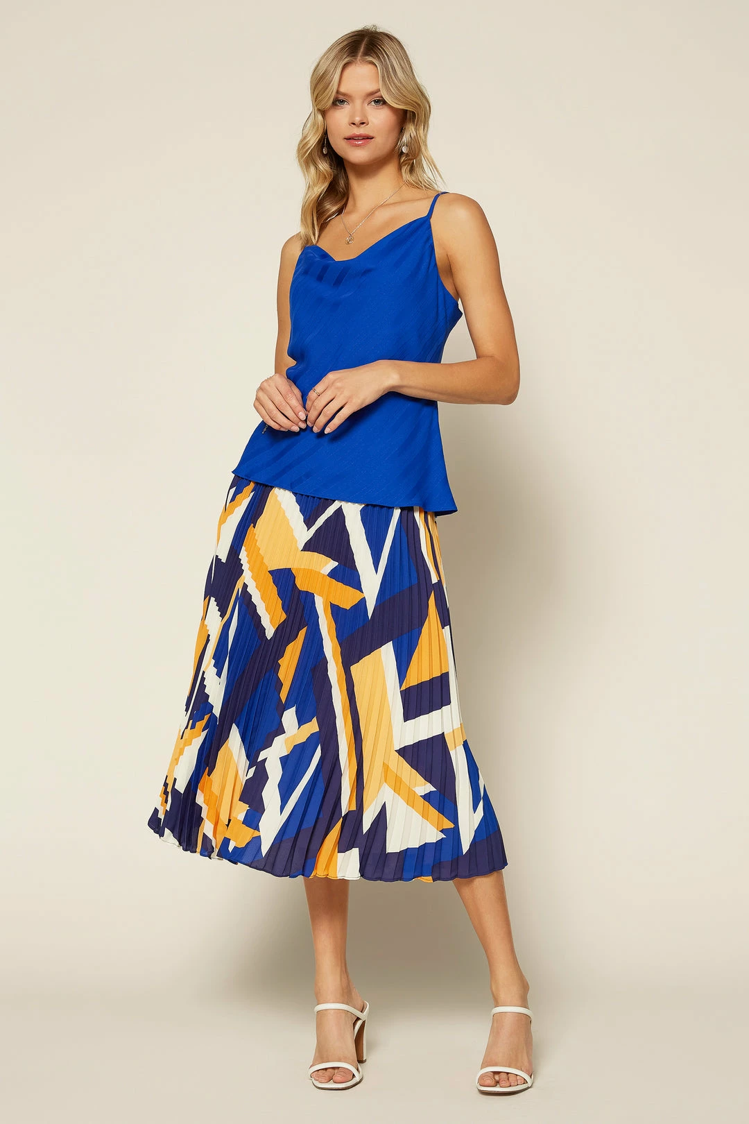 Looking flawless is easy in this slinky cowl-neck cami top. Crafted from decadent striped jacquard, it’s been cut on the bias for a body-skimming drape.